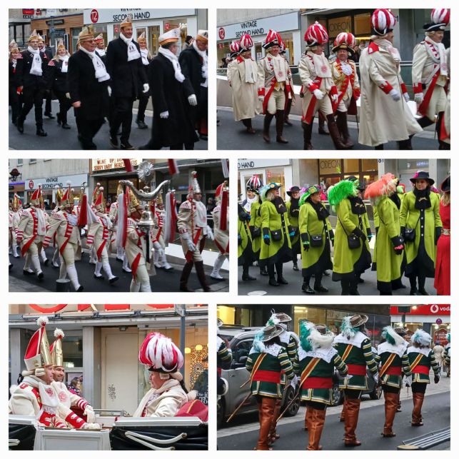 Vor meinem Kinobesuch wieder Gelegenheit für eine Zwischenmahlzeit im Fischrestaurant Hembsch gegenüber vom Odeon … zu meiner Überraschung dann ein Aufzug auf der Severinstraße … jede Menge uniformierte offizielle Karnevalisten, 'Gardisten' mit farbigen Uniformen, die sich selbst für den Inbegriff des Kölschen Karnevals halten. Warum knapp tausend uniformierte Menschen daher gezogen kamen? Tags drauf stand's in der Zeitung ... das Karnevals-Dreigestirn wurde zur 'Hofburg' geleitet ... dort wohnen die drei Oberkarnevalisten jetzt bis Aschermittwoch.