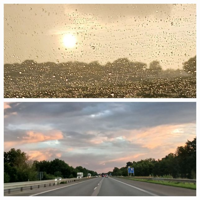 Wieder eine Reise durch 'mehrere Klimazonen', so möchte man meinen. Während meiner Tour durch Nordwestmecklenburg Sonnenschein, dann Autobahn von Lübeck nach Köln überwegend im Regen, auch Starkregen. Dann ab Leverkusen trocken ... und so soll es die nächsten 14 Tage auch bleiben: Höchsttemperaturen bis 33° und kein Regen mehr.