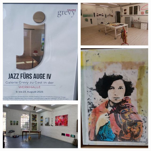 Heute auch Gast bei 'Jazz fürs Auge IV' - die Galerie Grevy - selbst zu Gast in der Werkhalle in Ehrenfeld (Venloer Str. 504). Auffallend positiv die Arbeiten von Agnete Sabbagh - In der Collage unten rechts …