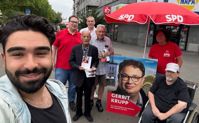 Langsam läuft der Kommunalwahlkampf an, auch in Köln. Seit einigen Tagen hängen überall Plakate, Heute dann der SPD-Stand mit Materialien zu unseren Kandidaten (Ratskandidat Gerrit Krupp und OB-Kandidat Torsten Burmester) an der zentralen Kreuzung in Ostheim. Da hier immer mehrere Parteimitglieder aktiv sind, gehe ich gern mit Material zur Haltestelle der Linie 9 und der verschiedenen Buslinien und spreche da die Passanten an. Schon aufschlussreich die Reaktionen auf meine Ansprache. Von Abweisung und Ignoranz bis hin zu freundlicher Aufnahme. Nächste Woche geht es dann weiter bis zum Wahltag am 14. September …