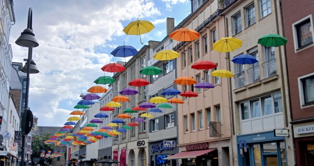 Als ich heute durch die Apostelstraße kam, fand ich sie "bunt beschirmt".
