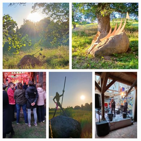 Sehr durchwachsenes Wetter, vom Sonnenschein über Gewitter und Hagel bis Starkregen. Aber im entscheidenden Teil des Tages dann doch Sonnenschein, als sich mehr als einhundert Fans des Skulpturenweg Burg Schlitz Görzhagen zum jährlichen Sommerfest treffen. Erst gab Jimmy Schütz eine Führung durch den Skulpturenweg (mit anderen aktuellen Künstlern). Dann - wie immer - 'Rock'nRoll, Bier und Wein, Bratwurst und Suppe - und eine Versteigerung von Kleinkunstwerken durch Wilfried Duwentester. Duwi war von der Höhe der Gebote so begeistert, dass er manchmal vergaß, 'zum 2. und zum 3.' zu sagen, weil er meinte, dass über dieses Gebot ohnehin niemand gehen könne. Und nicht vergessen: die Band! Sie fing an mit 'Sunny Afternoon' und 'Ain't no Sunshine' über 'Roxane' und 'I am the Walrus' und endete mit 'Gimme some loving'. Damit ist auch der Altersdurchnitt ein wenig angedeutet ... und ich hatte den Eindruck, dass sich hier niemand befunden hat, der AfD wählen könnte ... man fühlte sich einfach wohl!