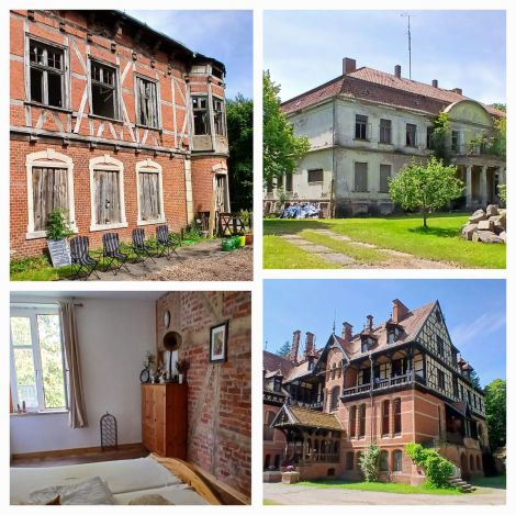 Tag 2 der MittsommerRemise, heute in Vorpommern. Welche Unterschiede: auf der einen Seite die Gutshäuser aktuell in der Sanierung wie in Rakow (links unten und oben in der Collage unten) oder Behrenshagen - hier sind die ersten Räume bezogen, aber noch viele zu sanieren. In Pütznitz ist nach mehr als 10 Jahren alles fertig (der Hausherr: "Wenn ich das vorher gewusst hätte ..." Ganz anders die Situation im Jagdschloss Gelbensande (unten rechts) - war immer intakt, heute u.a. Museum. Und schließlich kam ich wieder in Daskow (oben rechts) vorbei ... dämmert immer noch vor sich hin und verfällt ...
