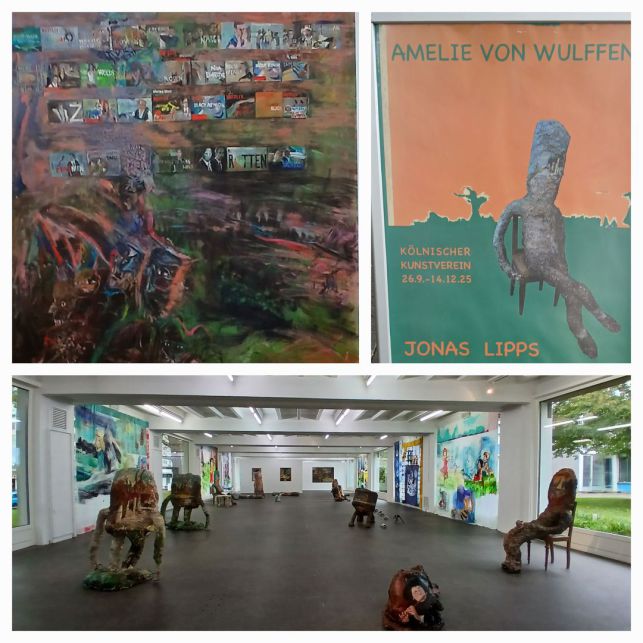 Der Kölnische Kunstverein stellt bis zum 14. Dezember Werke von Amelie von Wulffen aus: "Die bisher ungezeigten Skulpturen sind aus Pappmaché modelliert, einer eher aus dem Schulunterricht vertrauten Technik, die aber auch eine lange Tradition in der Bildhauerei hat und der sich die Künstlerin seit ihrer Berliner Retrospektive (2020) verstärkt zuwendet. Die Formung dieser Skulpturen, die mit einem ikonischen Kot-Geist begann, verlangt von Wulffen einiges ab. Denn Pappmaché lässt sich nicht nach Belieben formen, es ist aufwändig herzustellen, wird in vielen Schichten aufgetragen, weicht leicht wieder auf. Der Widerstand des Materials wird in der Sperrigkeit der Figuren deutlich, der langatmige Handarbeits-Prozess ist ihnen eingeschrieben," so der Kunstverein in seinem Prospekt. Die parallel stattfindende Ausstellung zu Jonas Lipps hat mich weniger begeistert.