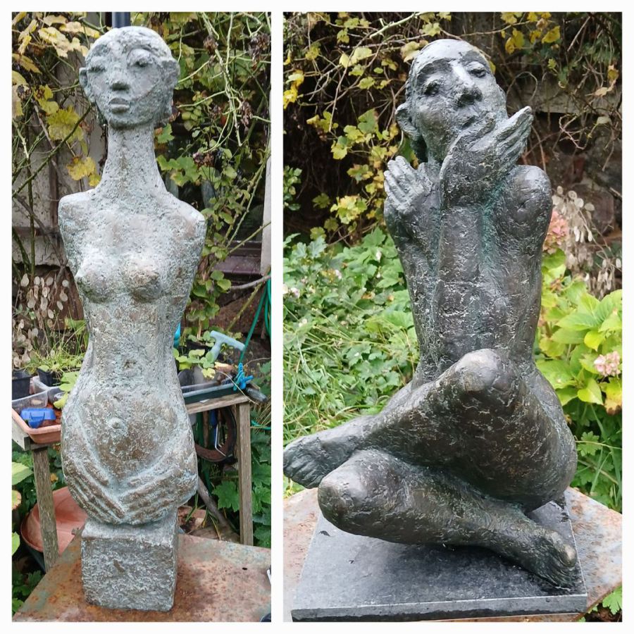 Heute Besuch bei Bildhauerin Dorothee Rätsch. Obwohl gesundheitlich ziemlich angeschlagen sind wieder mehrere Skulpturen in Bearbeitung, aus Speckstein, aus Serpentin und natürlich Terracotta ... fertig standen vor dem Atelier die beiden frisch gegossenen Bronzefiguren.