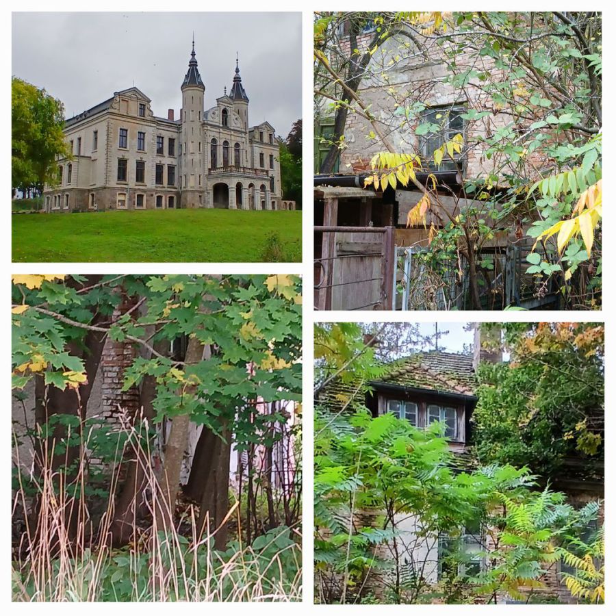 Einmal im Jahr schaue ich mir den Stand der Sanierung des Schlosses in Mallin an. Vor knapp 10 Jahren konnte ich mit Freunden noch so ins Schloss reingehen ... das Eingangsportal war längst dem hier üblichen Vandalismus zum Opfer gefallen. Inzwischen ist viel passiert, äußerlich sieht es schon großartig aus - nur hier und da fehlt noch ein Fenster. Bisher unbemerkt habe ich neben einem 'Geisterhaus' geparkt. Nach der Größe der Büsche und Bäumen drumherum wohnt hier schon seit Jahrzehnten kein Mensch mehr. Unheimlich im Nieselregen, blinde Scheiben und brökelnder Putz ...