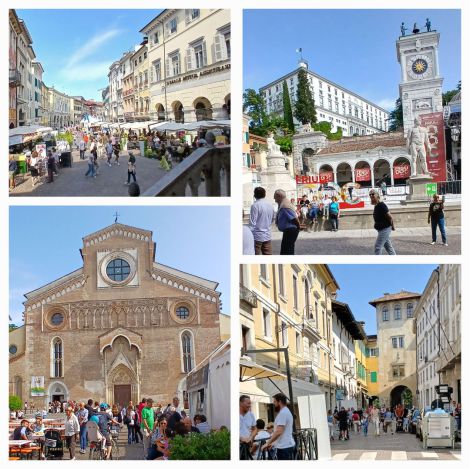 Viele Straßen in der Innenstadt von Udine sind nicht nur für den Autoverkehr gesperrt, sondern auch noch reichlich mit Tischen und Stühlen vor mehr als 100 Ständen bestückt - nicht nur 'Fressmeile', sondern tatsächlich mit Info- und Verkaufsständen. Aber ich wollte ja ohnehin die Altstadt zu Fuß erkunden. Morgen geht das 4-Tage-Fest zuende.