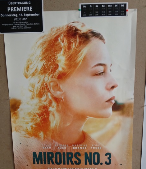 Heute wohl der letzte richtige Sommertag, bevor es morgen ziemlich herbstlich werden soll. Noch einmal ein Kinobesuch, morgen wieder Gartenarbeit an der Müritz. "Miroirs No. 3 ist ein Film des Hier und Jetzt, angesiedelt in der weiten spätsommerlichen Landschaft der Uckermark, luftig genug, dass man nach den Leitmotiven Wasser und Feuer in Petzolds Undine und Roter Himmel tatsächlich vom Abschluss einer Elemente-Trilogie sprechen könnte. Das glasklare, reduzierte Setting gibt den Figuren die Chance, sich neu zu orientieren, und es beginnt eine zweite Geschichte, die den Thriller unterläuft. Eine, in der die Dinge des Lebens und des Alltags in ihr Recht treten und die auch hübsch absurde Momente ha," schreibt die ZEIT. "Der Titel des Films "Miroirs No. 3" verweist auf ein Stück von Ravel. "Eine Barke auf dem Ozean" heißt das dritte von fünf Klavierstücken, die Maurice Ravel unter der Überschrift "Miroirs" (Spiegelbilder) vereint hat … wie auf einer schwankenden Barke ringen die Protagonisten um ihr inneres Gleichgewicht," wie ich bei NDR-Kultur erfahren habe … hatte mich doch neugierig gemacht!