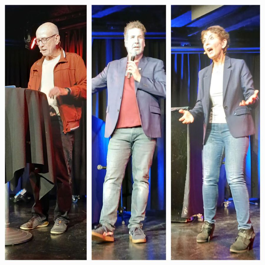 Fest der Freunde und Förderer wie in jedem Jahr…. FFF im Ateliertheater. Geschlossene Gesellschaft der Fans des Ateliertheaters … mit Kostproben zum neunen Programm. Wirklich aufgedrängt haben sich Sabine Domogala und Stefan Reusch - stehen beide auf meiner Wunschliste für die nächsten Besuche des Ateliertheaters. Unten die beiden mit Torsten Schlosser … ein Muss sein Jahresrückblick und Formate wie 'Schnauze voll'.